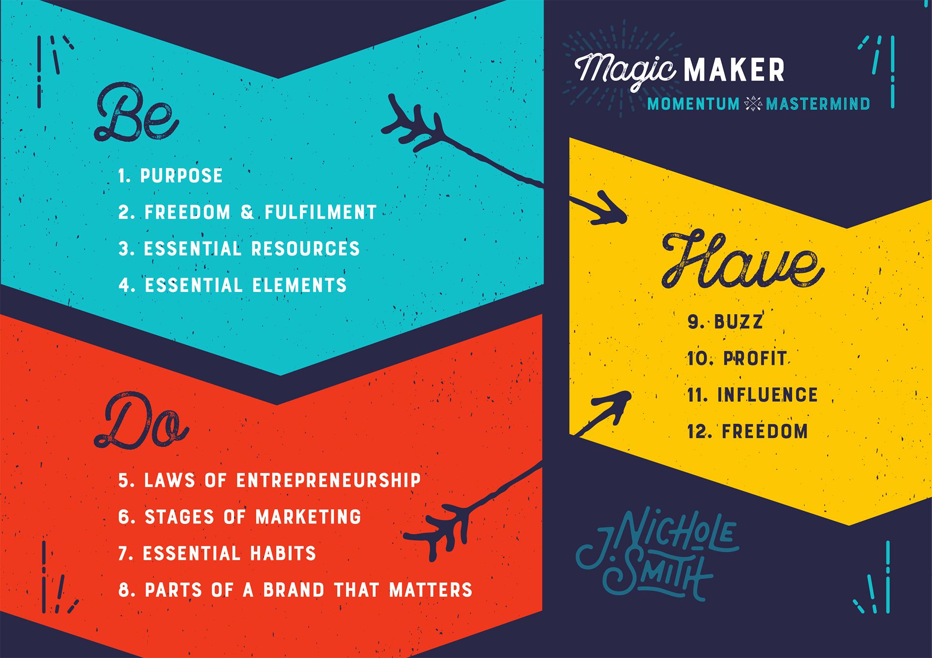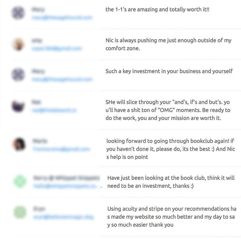 This is the BEST place to get access Nic's genius to help you find your why, grow your brand, launch a new business or develop your passive income products. Our monthly calls included: