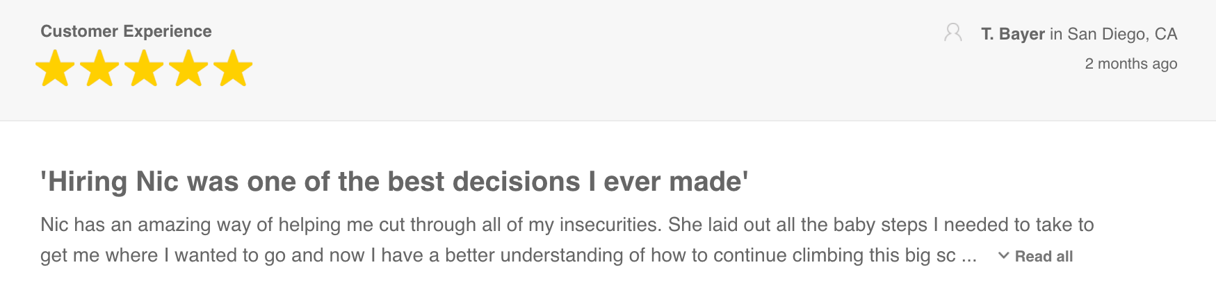 "Knowing that your business has potential to move to the next level is one thing, but figuring out how to do it is the challenge. We are so fortunate that we met Nichole at the time we needed her guidance and expertise. Joining her consulting program was a definite game changer as she did so much more than helping us clarify our brand vision and mission. Nichole was key to us successfully brainstorming our brand methodology and signature programs. In a market that is growing more competitive every day we have confidence that our brand stands apart and can deliver a marketing message that resonates with our niche. We highly recommend investing in your business with Nichole as your brand coach."