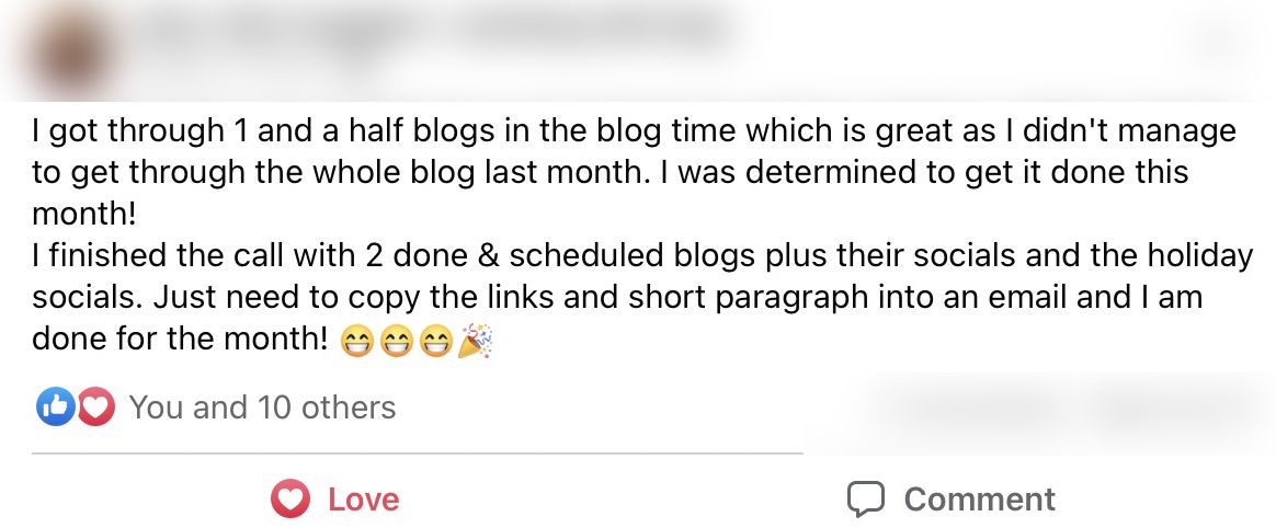 I love the planning calls! Setting these goals at the start of the year has really helped me stay specific with my focus. Checking-in monthly on the calls has helped me see all the progress I have made and the work I'm putting in. I've finally accomplished so many things this year that I have had on my to do list for ages. The accountability has been awesome to help me do this.