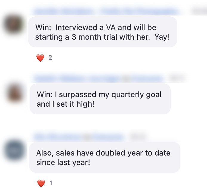 The combination of physical planner, planning calls, co-working calls, and a supportive community have helped me to (finally!) stop operating from a place of overwhelm and panic. Instead, I've started actually, you know, *planning.* Operating from a mindset of "Where is the joy?" and "What would be easy?" I have been able to map out the small, interim steps that I need to accomplish each week, month, and quarter. And that has helped me meet deadlines and reach goals. Finally!